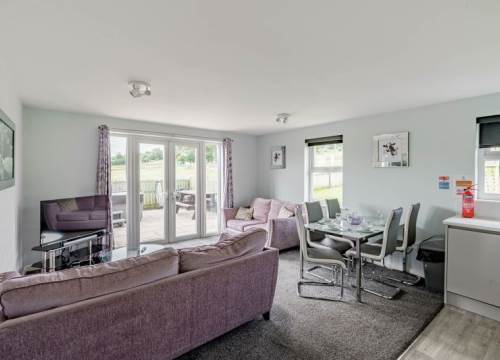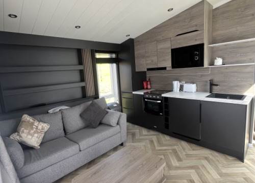 Gold accommodation with the ultimate added luxury. Large decked area with HOT TUB. Centrally heated and double glazed, flat-screen TV's throughout. Sofa bed in lounge providing the extra sleeping space. Spacious and well-appointed kitchen with integrated fridge/freezer and microwave. Two bedrooms, one double with ensuite and one twin. Large family bathroom with shower. (images for illustration purposes only)