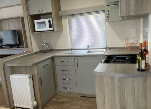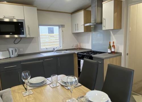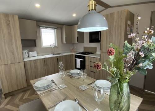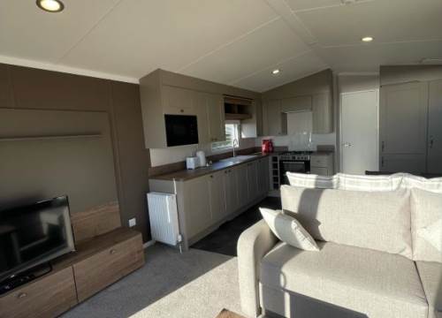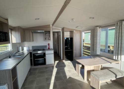 The Avalon is the perfect choice for those seeking excellent value for money without compromising on comfort or style. New for 2025, this modern holiday home features a fresh natural colour scheme and a contemporary design throughout. Inside, you'll find spacious lounge seating area with a practical dinette-style dining area, and plenty of well-thought-out storage. The kitchen is equipped with a gas cooker and grill, with a microwave, and an integrated fridge/freezer.
