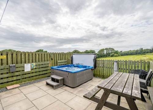 Gold accommodation with the ultimate added luxury. Large decked area with HOT TUB. Centrally heated and double glazed, flat-screen TV's throughout. Sofa bed in lounge providing the extra sleeping space. Spacious and well-appointed kitchen with integrated fridge/freezer and microwave. Two bedrooms, one double with ensuite and one twin. Large family bathroom with shower. NO PETS - (images for illustration purposes only)