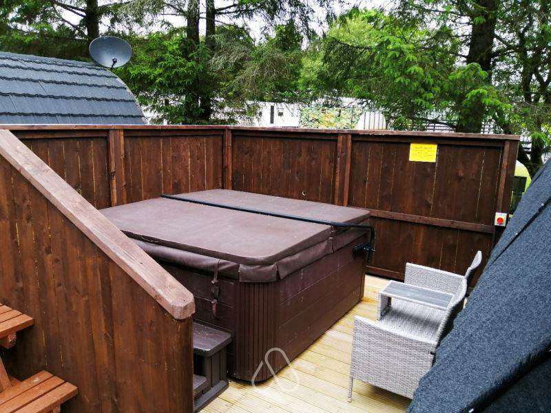 Beside the pod is a 6 seater hot tub which is always ready to use, no waiting about or planning when to use it like some other wood fired hot tubs!