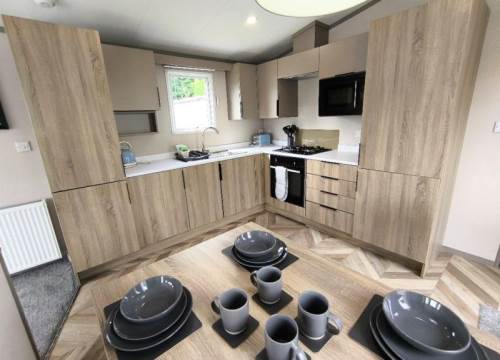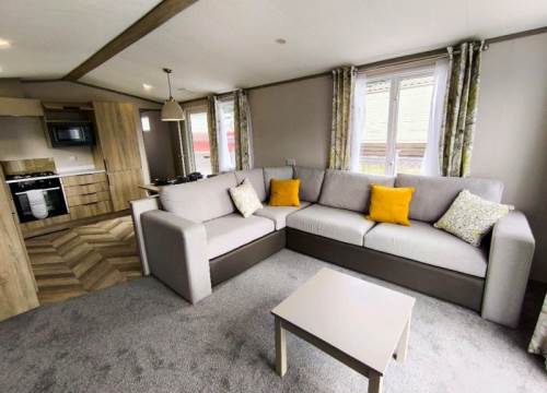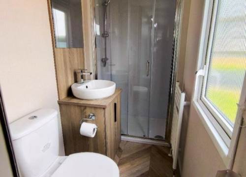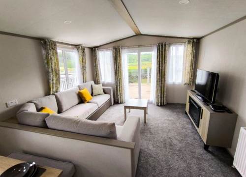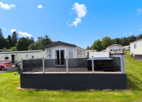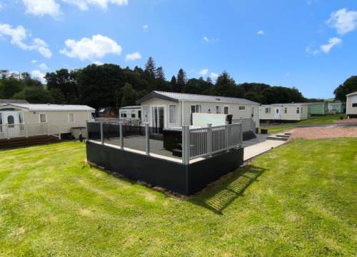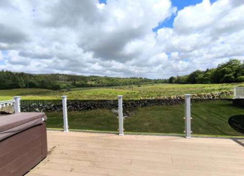 With a large living space, you and your guests can enjoy a morning in gazing at the sunrise through the large doors or a fun-filled day of games in the spacious lounge. Modern open storage add style and practicality to the bedrooms, and the easy to clean bathroom comes complete with everything you need to enjoy holidaying your way in the Stonewood. The Victory Stonewood has a very large composite decking and PVC balustrade with a fantastic glass front to make the most of the uninterrupted views of the South Ayrshire countryside, imagine sitting in the hot tub relaxing enjoying the peace & quiet on a lovely summer’s evening.