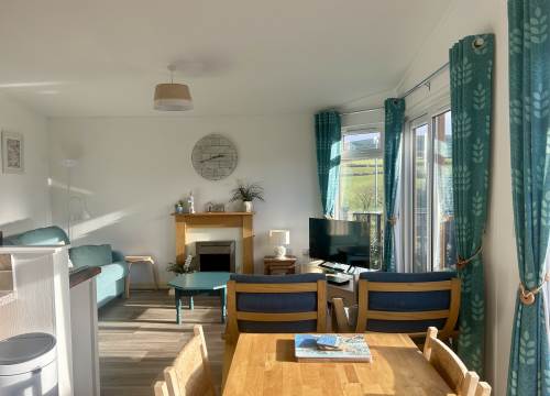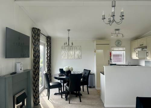 This stylish lodge offers a comfortable open plan living area, kitchen and dining space.