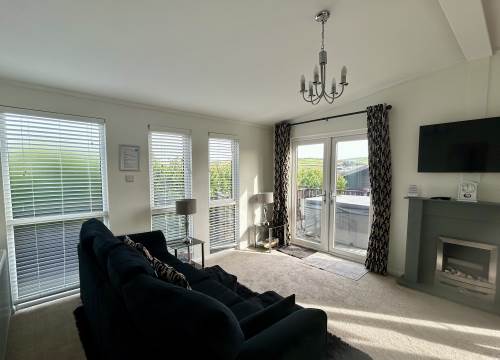The two sets of patio doors open to bring the outside in and lead to your personal decking area with hot tub.