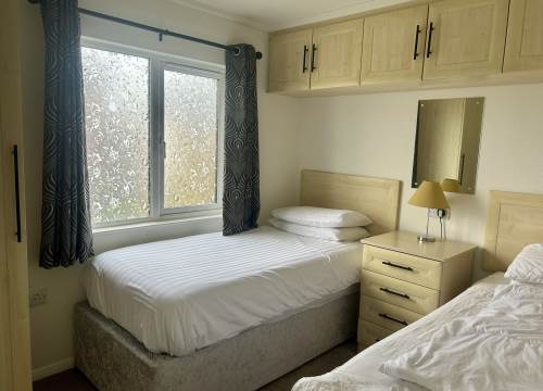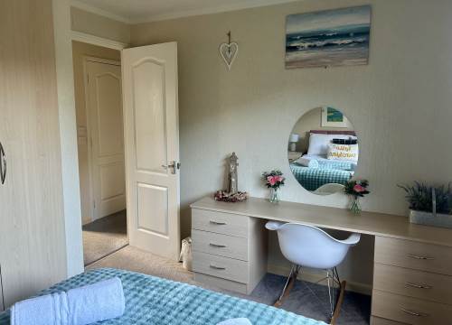 This modern two bedroom holiday home comprises of one double bedroom with dressing table and a twin bedroom.