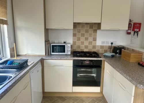 The kitchen comes equipped with electric oven, gas hob, fridge/freezer and microwave.