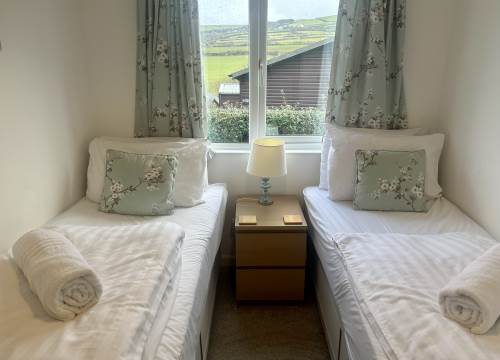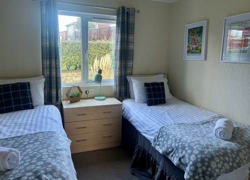 This two bed holiday home offers one double bedroom and one twin bedroom with small single beds.