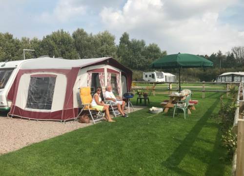 This pitch is gravel hardstanding which is also suitable for an awning (metal pegs required). The pitch includes electricity. Some of these pitches are close to our facilities. Please note on your booking if, for mobility reasons, you require one of these pitches. These pitches are suitable for caravans and campervans up to 10m; if your unit is larger than this, please contact our Reception (01233 620859 or holidaypark@broadhembury.co.uk).