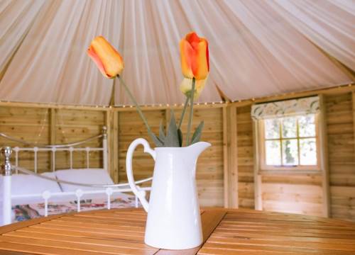 Find a little romance in our beautiful Lotus Belle tents for 2. Equipped with 1x double bed, bedding (you can hire bed linen for an extra charge), lighting, Frontier stove for cooking and heating, crockery, cutlery, BBQ utensils, cool box. Outside you have your own covered Gas BBQ and picnic table.