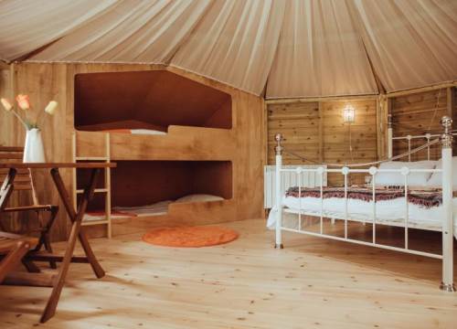 The bespoke family glamping pods have been built to the highest specification offering space and comfort aplenty and the adult belle tents are cocoon-lined with zipped in ground sheets and full coconut matting. Both options sit on solid wood floors and have real beds and mattresses.