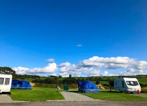 We stayed on a non electric pitch Lovely site, well maintained showers and toilets clean, beautiful views from the top of the hill.