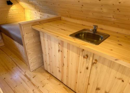 A unique spruce Fairy Eco Pod comprising 2 x double beds or 1 x Double and 2 x seating on the Causeway Coast