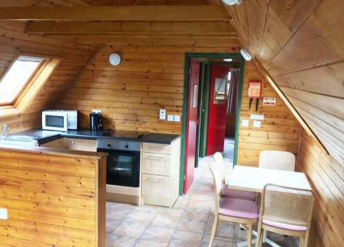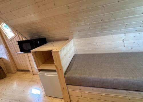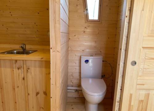 A WC, together with basic kitchen facilities (Microwave, fridge, sink) and electric heating makes this a cosier option than sleeping under canvas. Bed linen supplied. Picnic table, BBQ, no towels.