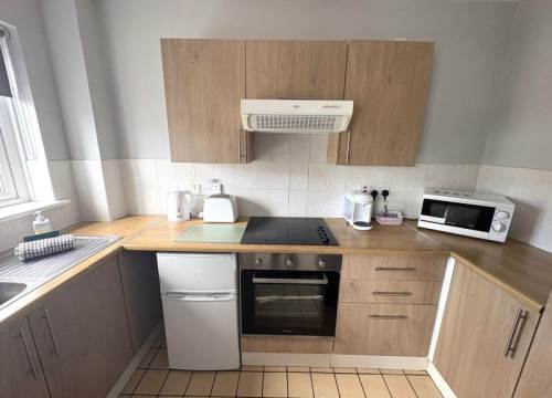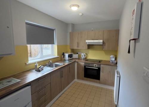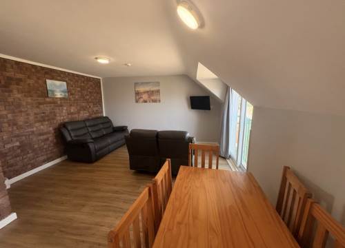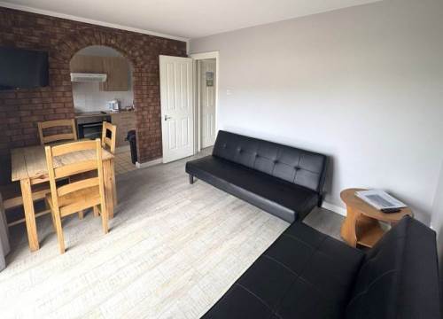 Two bedroom apartment with fully furnished kitchen and bathroom with shower. Comprises of 1 double bedroom, second bedroom with 2 sets of bunk beds.
