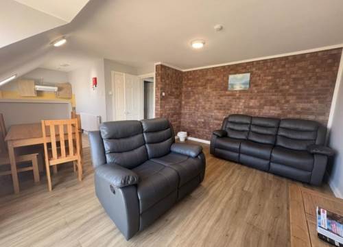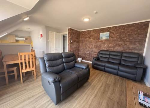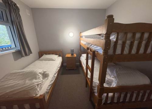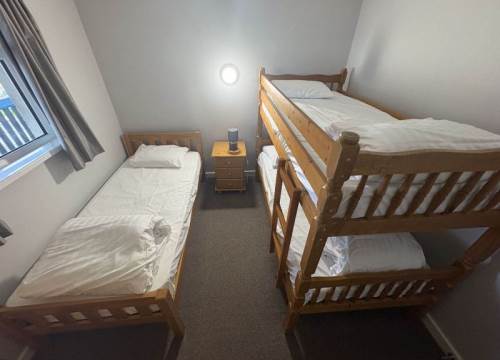 2 bedroom apartment with kitchen and bathroom with shower. Comprises of 1 double bedroom plus bedroom with bunk beds and 1 single bed.