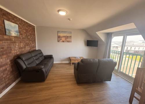 ** Our Top Seller** Two bedroom apartment with fully equipped kitchen, bathroom with walk in shower and private outdoor HOT TUB. Comprises of 1 double bedroom, second bedroom with bunk beds and 1 single bed. Sleeps 5 in total. On site facilities include swimming pool, indoor and outdoor play areas, arcade, launderette and shop. Family bar and bistro serves breakfast and evening meals most of the year. Near Royal Portrush Golf Club.