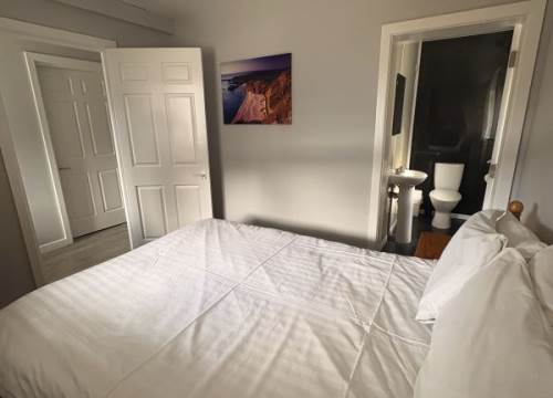 Two bedroom apartment with fully furnished kitchen and bathroom with shower and private outdoor HOT TUB. Sleeps 5 in total.