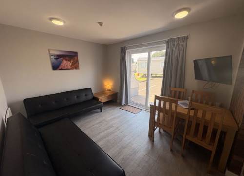Comprises of 1 large double bedroom and sleeping arrangement for 2 in the lounge. Onsite facilities include swimming pool (additional charges apply, indoor and outdoor play area, outdoor gym, launderette, family bar, bistro for breakfast and evening meals most of the year, kids meals, arcade, heating, CCTV. free parking.