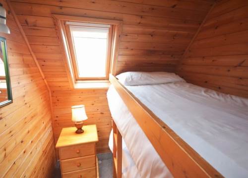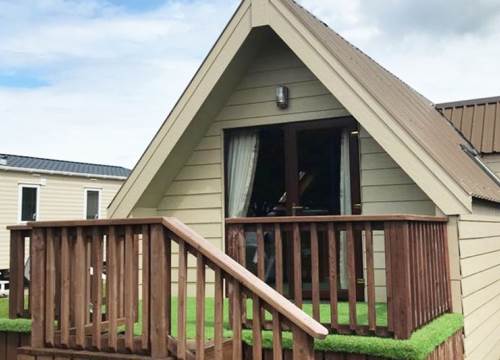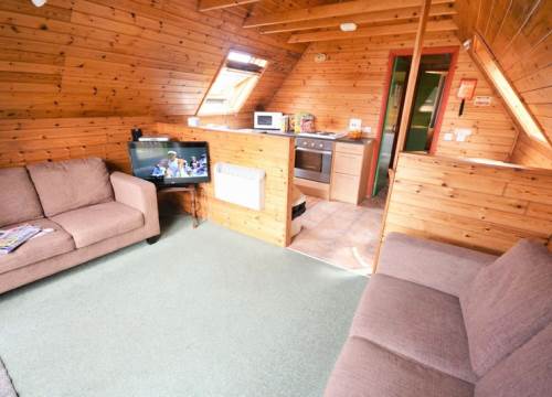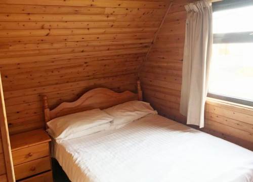 A two bedroom detached pine lodge , comprising one double and one bunk bedroom (sleeps 4). kitchen , bathroom and furnish lounge with patio doors