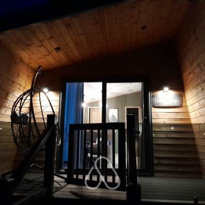 We also offer self contained glamping pods, which can be rented for a short break. The glamping pods have their own private veranda area. They sleep 6 people and 2 double pull out beds and 2 single beds on a mezzanine level. These pods are centrally heated and come with all bedding, towels and kitchen equipment.