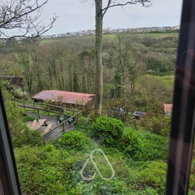 Each holiday cabin has its own plot on the hillside, surrounded by trees, flowering shrubs, hedges and rustic fences. All our cabins have views across the valley, with some looking out over the water meadow or towards the sea.