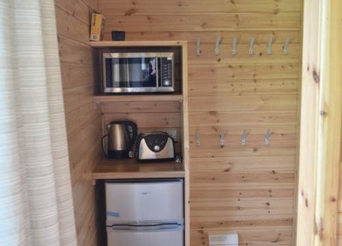The kitchen has a Fridge/Freezer, toaster, kettle, and microwave oven. Please bring your own camping tableware and cutlery.