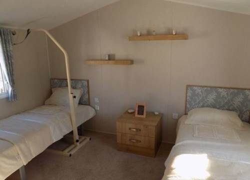Sleeping a maximum of 4 people, our 2 bed wheelchair accessible caravan holiday home has been specifically designed with wheelchair users in mind. It has two twin rooms with sliding doors for ease of manoeuvre. The wet room has a sealed, slanted self-draining floor, designed to allow wheelchair users full access to the facilities.