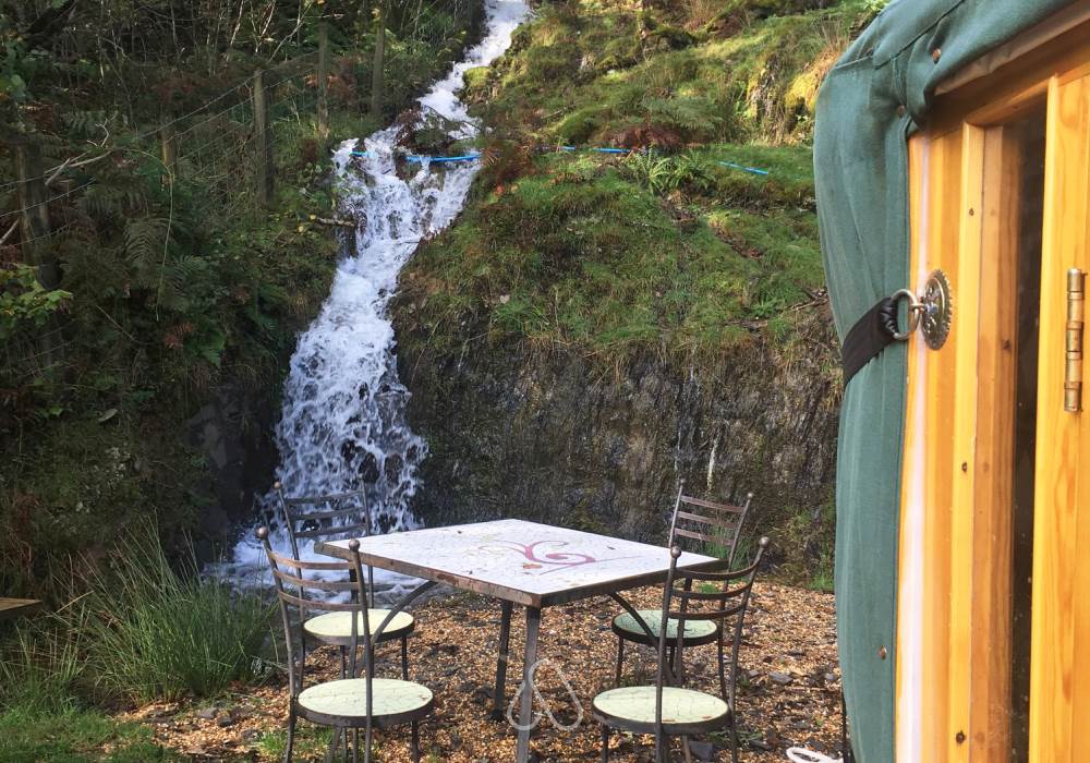 River yurt is set right on the river, with a riverside bath and seating area. Best access for river walks and picnics and discovering the secret splash pools. Perfect for couples!