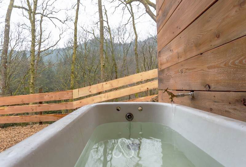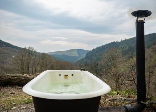 The enchanting drive through the forest marks the beginning of your adventure. Wake up to the melody of birdsong and the morning mist drifting over the trees. Your days can be as serene or as active as you desire, with beautiful walks on-site, excellent nearby walking trails, and some of the finest mountain biking in Wales. In the evening, indulge in a hot outdoor bath, enjoy the sunset, or gaze into the flames of a crackling fire. At night, be captivated by the breathtaking stars, free from the light pollution of the city.