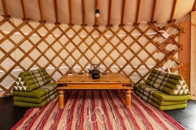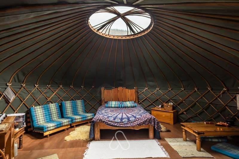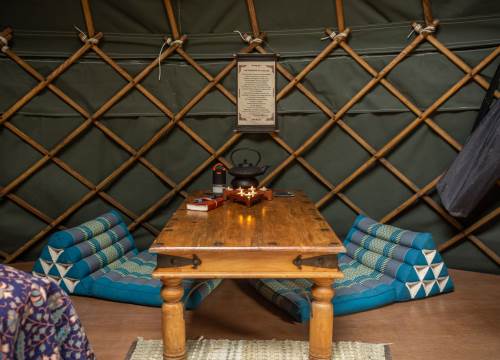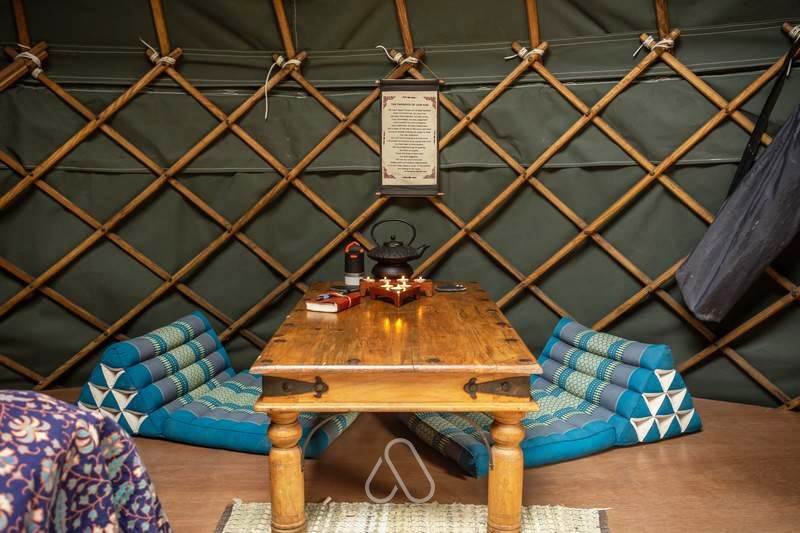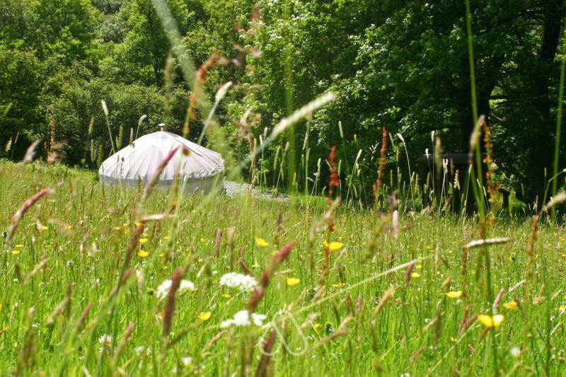 Meadow yurt is located in a beautiful meadow and has a lovely sunken bath overlooking the forest.