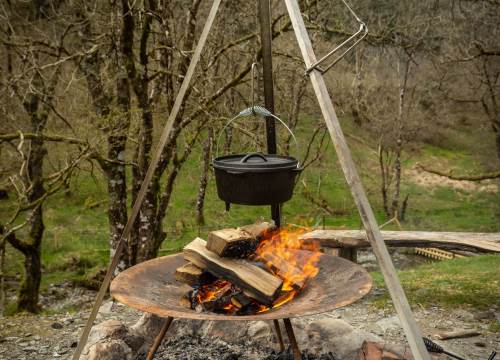 Set at the top end of the valley with spectacular views down across the site and valley from the yurt and outdoor bath. Outdoor campfire and seating area. For those of you who are inclined to explore more of what Wales has to offer, this yurt is also easily accessible from the parking spot with an easy walk up a slight slope.