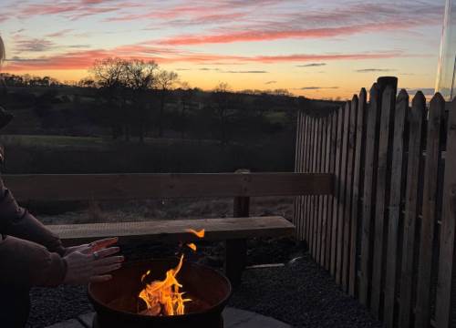 Our Hobbit Huts have a picnic table and a fire pit. You have access to the kitchen/dining area and toilets and showers, all finished to a high standard.
