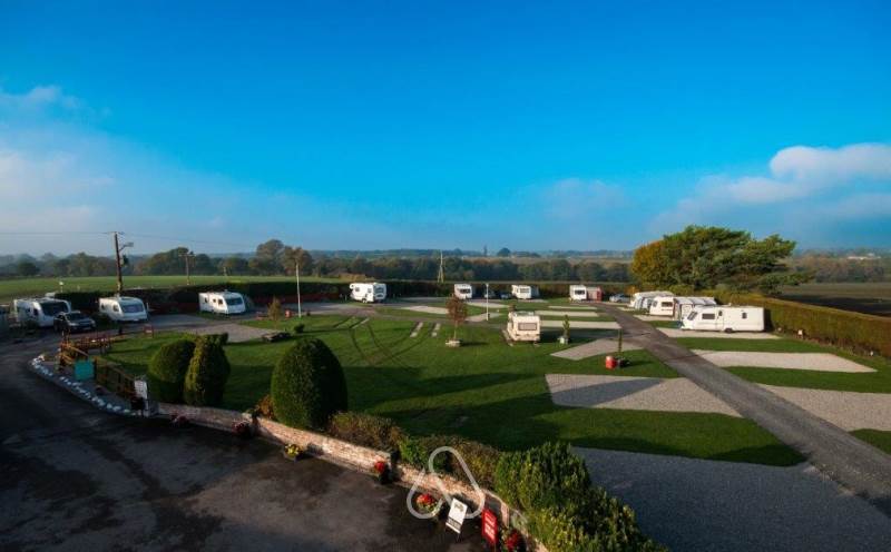 Gravel for wheels, grass surround. Open all year round, pitches suitable for caravans, motorhomes, campervans and trailer tents. If your caravan or motorhome is over 8meters in length, please contact us directly to check availability.