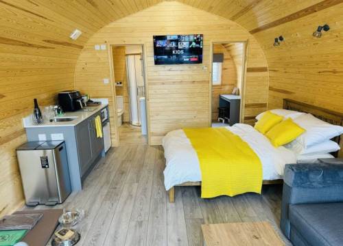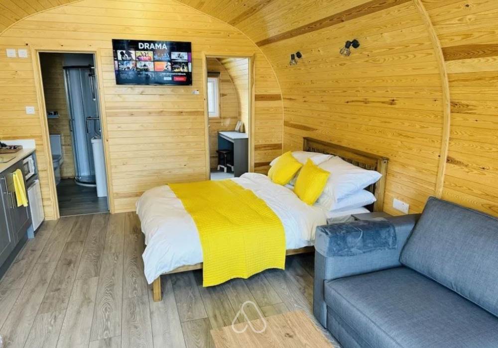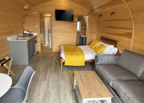 The glamping pods at Ffrith Park are thoughtfully designed to provide a cosy and relaxing stay in all seasons. Each pod is fully insulated and heated, making them a great choice year-round. Inside, you’ll find comfortable furnishings, a small kitchenette for preparing meals, and an en-suite bathroom with a shower. Outside, guests can enjoy their own private decking area—ideal for morning coffees, al fresco dining, or simply unwinding with views of the Welsh countryside. Whether you're planning a weekend break or a longer getaway, the pods provide the perfect base for exploring the surrounding area.