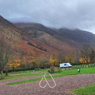 The campsite was easy to find and we arrived earlier than expected, the site did accommodated our early arrival as the site was quite empty( as it was end of season).Unfortunately for glen bevis ths weather was so bad our 4 night stop turned to 1 night, being positioned under trees the rain and wind was very disturbing and ths wind was lift our awning, with not much to do but sit and watch the wind and rain we decided to leave.During our short stay we did use facilities, the toilets though tired ,were very clean with radio playing ,the showers though strug8to impress as the water glow was a light sprinkling and water Luke warm and even more tired than toilets but still very clean. There was a lovely pot washing area and large laundry room,dogwash areas and waste disposal areas. The pitches were large gravel pitches be warned to take substantial pegs as some od ours would go in ths ground and be wary to your positioning as we ended up maneuvering around manholes with guy ropes.
