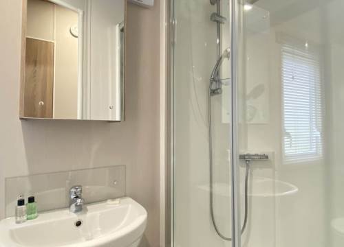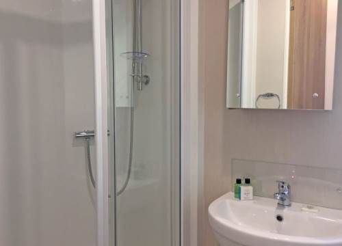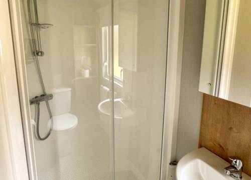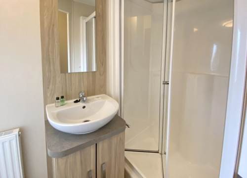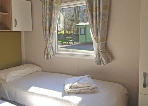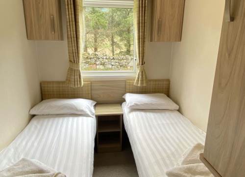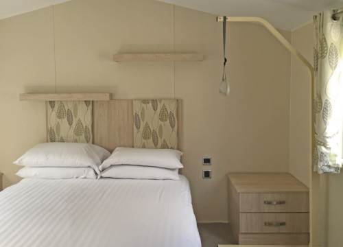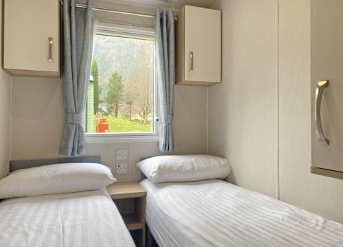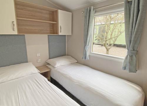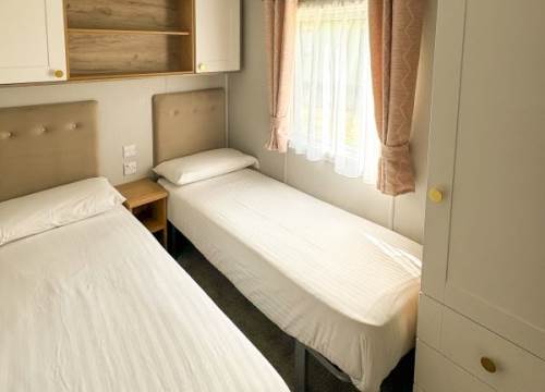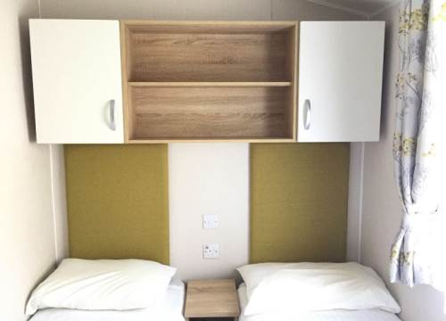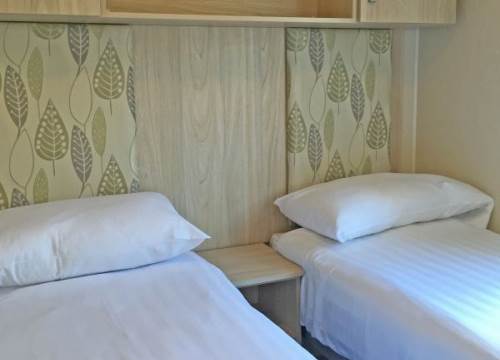 Modern 2 bed caravan with one double and one twin room.