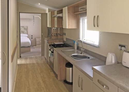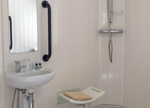 Spacious, wheelchair friendly, caravan with wet room and low-level sink and cooker. One double and one twin room.