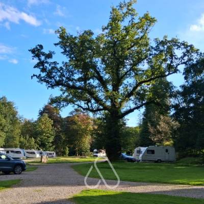 Hard Standing Pitches are arranged around a gravel access road skirting a large central grassy area. There is a short walk to the New Facilities either on the level tarmac road or up a few steps. Open views to the Glendaruel Hills but sheltered by mature woodland home to Red Squirrels and abundant birdlife.