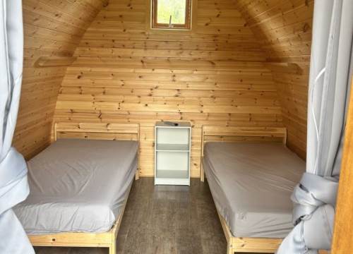 Includes a bbq, firepit, toilets and showers are onsite, electricity, kettle, cold box & crockery and outside seating for 2. Bedding is provided for both the double bed, and the 2 camp beds. Onsite Wi-Fi is available from reception.