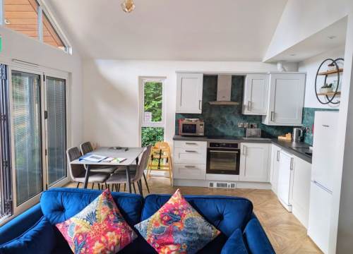 Inside, you’ll find a king sized bed, 2 single beds, a fully equipped kitchen, a shower room, and a cosy seating area to curl up with a book or watch a film. Large windows and a private deck bring the outdoors in, with a private enclosed garden. Outside, soak in the hot tub, enjoy your morning coffee on the deck, or stargaze by the firepit. Enjoy a game of table tennis, or a family bbq with equipment provided. Whether you’re after a romantic retreat, a digital detox, or just some time away from it all, The Owl’s Hoot is the perfect place to recharge.