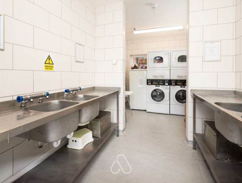 The wash up and laundry facility in the main building offers convenience with large sinks for washing up, a freezer for ice, and washing machines and tumble dryers, enabling campers to pack lighter and stay longer. The on-site shop is well-stocked and reasonably priced, providing everything from daily essentials to camping equipment and local products.