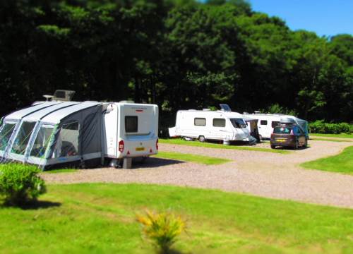 Our 9 meter gravel hard standing pitch is ideal for your large motorhome or touring caravan, awning (rock pegs required) and one vehicle.
