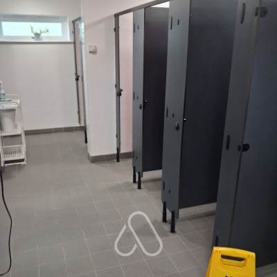 Extended laundry room with coin-operated washing machines and tumble dryers, available for a small fee. Indoor Elsan waste disposal and motorhome service point. Dedicated hot water dog wash.
