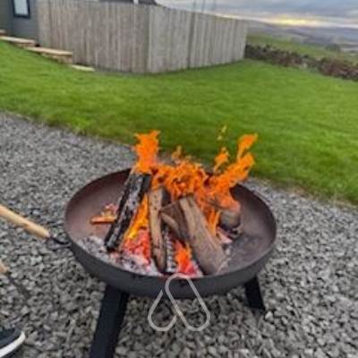 Private furnished patio with fire pit, BBQ and hot tub. Please note the patio is not enclosed and dogs must be kept on a short lead at all times. Sturdy dog ring provided.
