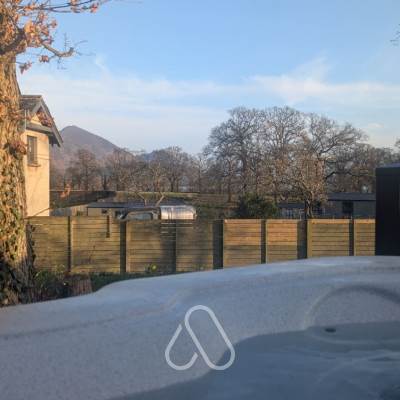 Amazing view of skiddaw Beautiful large 4 bed house all with en-suites and great entertaining spaces Two hot tubsLovely log burner with ample wood House lovely and warm and a cozy feel Highly recommend we have been twice to the house and also to the lodges and will return again next year Very reasonably priced considering the amenaties in the house