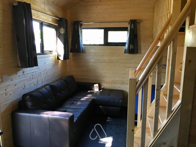 The lodge has one double bed on the ground floor and two double beds on the mezzanine floor.