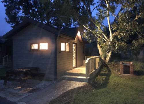 They each contain two double beds, one single bed, picnic table, small fridge, kettle, lights and heater. There is no bathroom or kitchen in the mini lodges. The toilets, showers, camper’s kitchen and laundry room are just a few feet away.