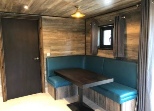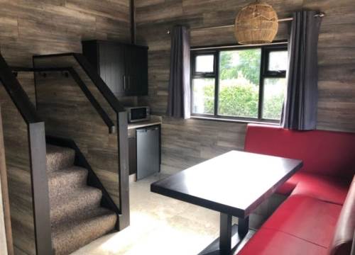 Indoor dining area to relax during your stay, with central heating within the lodge.
