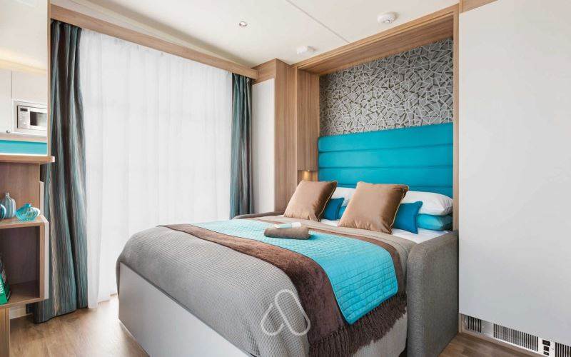 The all-new S-Pod 6 offers ingenious compact living space, capable of comfortably seating and sleeping 6 people thanks to its clever raised bunk area. It even has an Optiflame® electric stove feature fire, fully equipped kitchen and large washroom with separate shower cubicle.