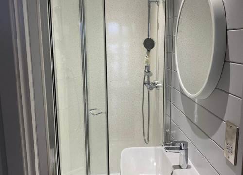 One twin bedroom has 3′ single beds and the other twin room has 2’6” single beds and there is a family shower room.