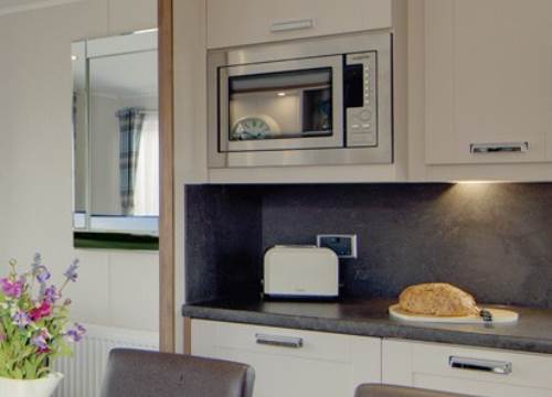 Features include Shaker Style Kitchen , with Integrated Microwave, Fridge Freezer, Gas Oven/Grill with separate Five Burner Hob, Extractor Fan, and Integrated Dishwasher. The lounge has two freestanding two seater sofas, one with fold-out sofa bed.